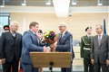 Звучит Государственный гимн России. Председатель Шелеховской ТИК Наталия Лола оглашает результаты прошедших выборов, по итогам которых за Сергея Липина отдали голоса 6502 человека, что составило 55, 11 процентов от числа избирателей, принявших участие в голосовании и вручает ему удостоверение избранного главы города.