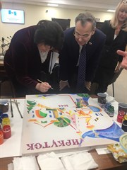 В рамках презентации была открыта выставка работ учащихся и преподавателей Детской Художественной школы им. В.И.Сурикова и проведен мастер-класс для депутатов Законодательного собрания в технике «Батик».