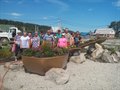 Стоило бросить клич – и активные жители откликнулись, дружно пришли и облагородили пустующий ранее кольцевой перекрёсток. Огромное спасибо всем участникам этого творческого проекта за интересные идеи, за физическую и финансовую помощь, за посаженные в клумбу цветы. А местным неравнодушным предпринимателям – большая благодарность за доставленные булыжники, скальник для тропинок рокария, материалы для изготовления и покраски баклушки.